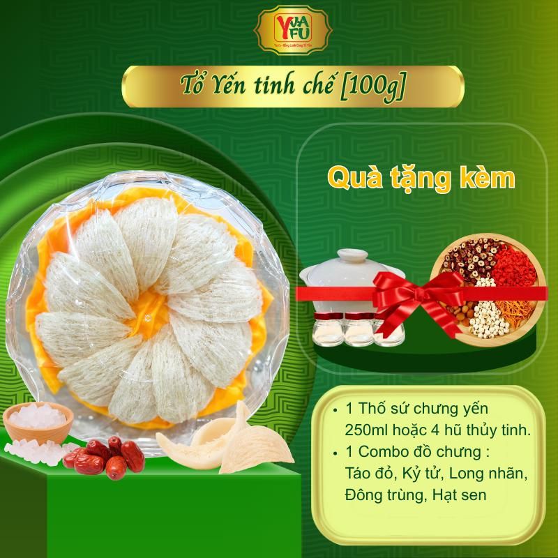Tổ Yến Tinh Chế 100g - Không Pha Trộn Đường , Tạp Chất - Yến Sào Yvafu - Tặng 6 quà tặng kèm